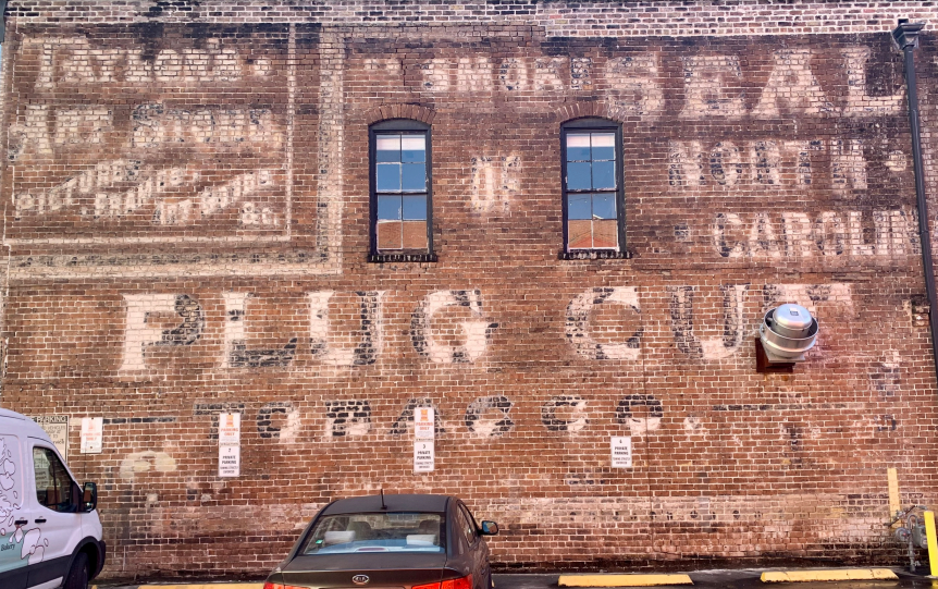 The wall is notable for the historic painted signs painted over the bricks and the proposed repairs include measures to preserve those signs while also using appropriate materials to match the wall’s historic mortar and bricks. The Wright Square Bistro currently operates out of the building.