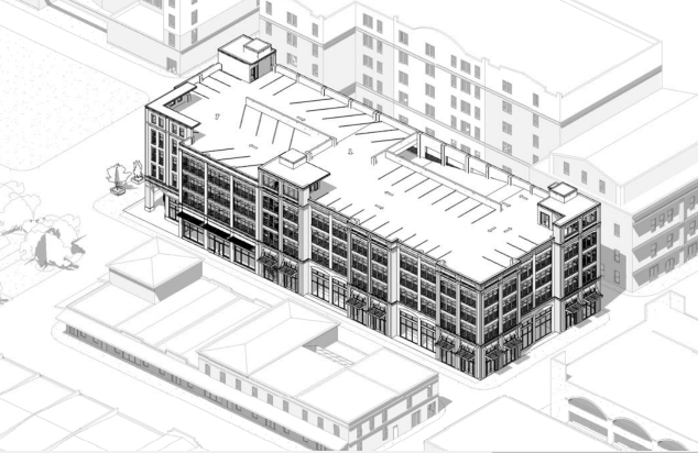 A parking garage will replace a parking lot with retail on the ground level under a plan recently submitted to the Historic District Board of Review.