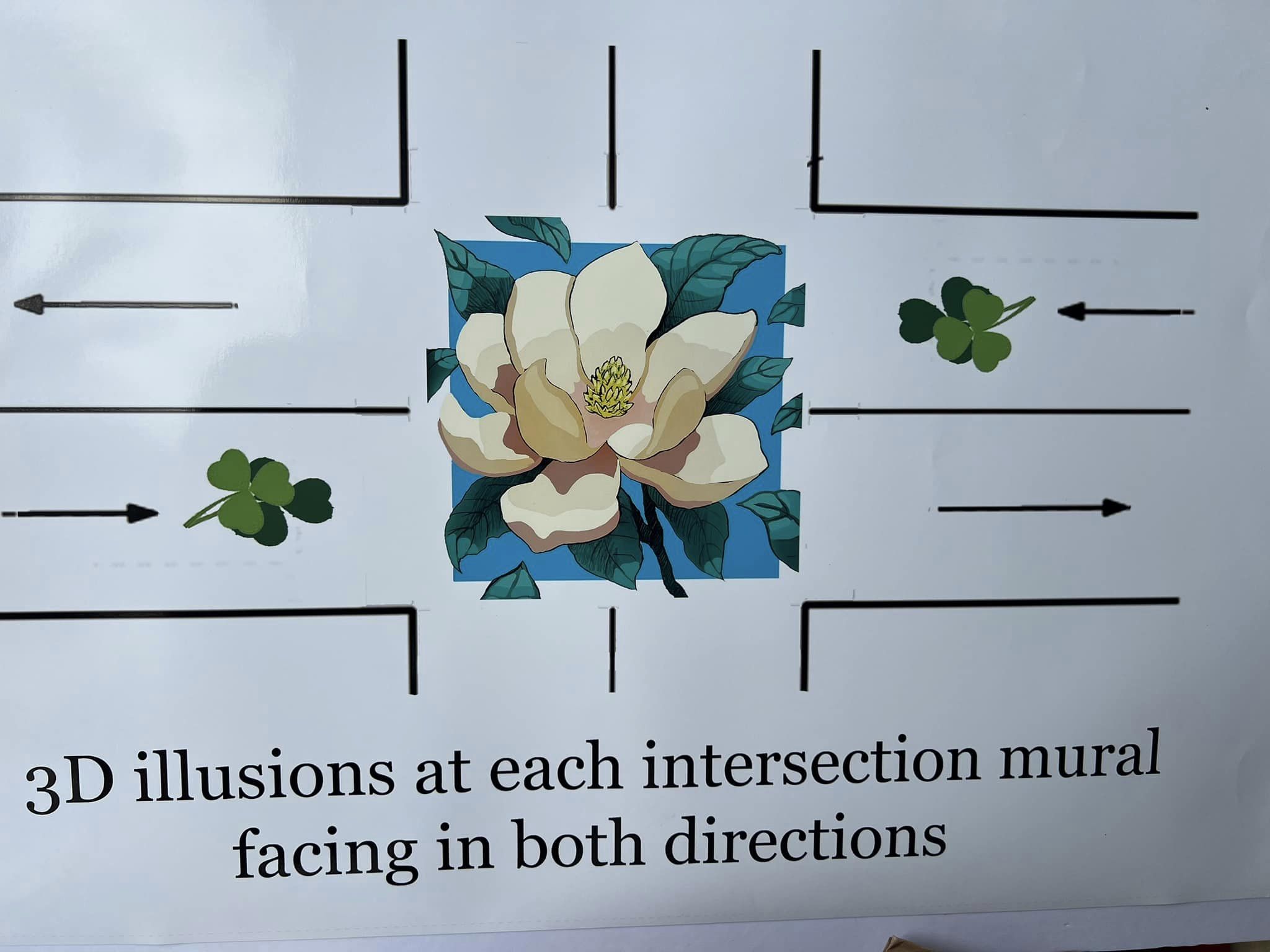 MacGregor’s “Magnolia Mural” was selected by the city following a request for proposals in April for an asphalt art installation meant to slow down motorists within the 1/3 of a mile section of the neighborhood road between Cynthia and Delano streets. Essentially a mural painted on the roadway, the street art would work in conjunction with speed humps currently in place, as previously reported.